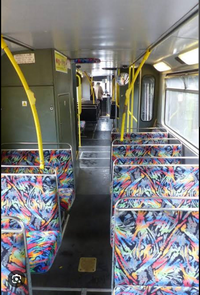 This amazing moquette is so bright and is used on the Blackpool Tram in Northern England! It's also used on Australian coaches and buses.