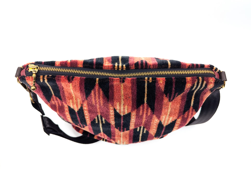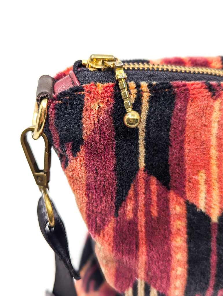It's been carefully made up into a Large Carper Bag, with quality finishes like brass loops, and a vintage golden YKK zipper. It has a leather base that holds its shape.